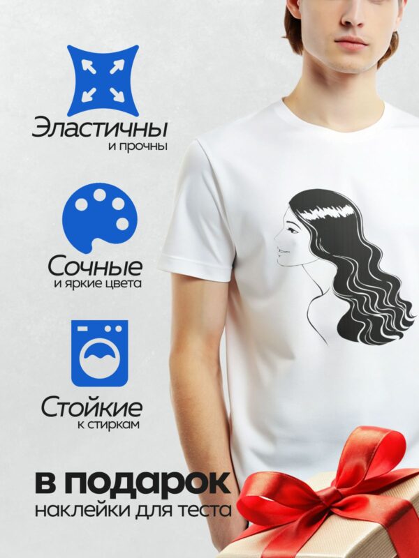 Термонаклейка на одежду DTF / Ретро-прическа, изящные черты лица, подпись художника.