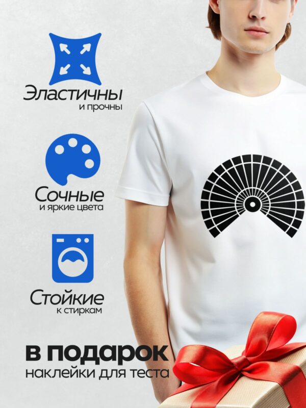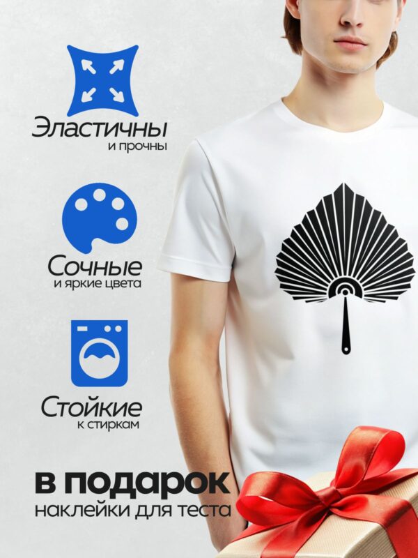 Термонаклейка на одежду DTF / Черный веер с белыми линиями, симметричный узор.