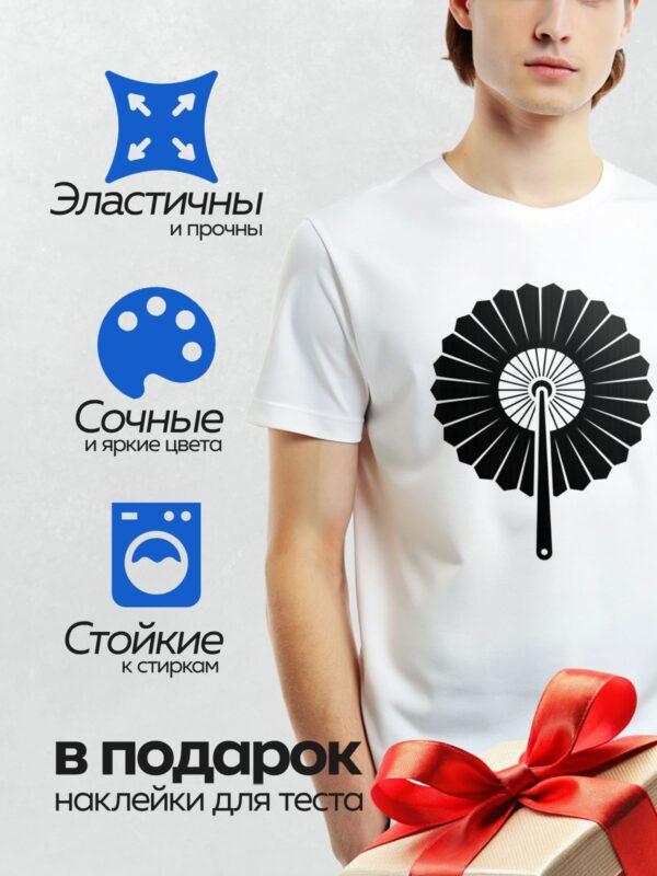 Термонаклейка на одежду DTF / Черно-белый веер с симметричным узором и точками.