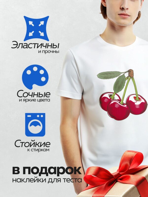 Термонаклейка на одежду DTF / Три стилизованные вишни с листьями на ветке.