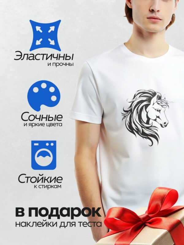Термонаклейка на одежду DTF / Черно-белый силуэт единорога в движении.