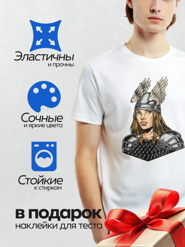 Термонаклейка на одежду DTF / Валькирия в шлеме с мечом и щитом.