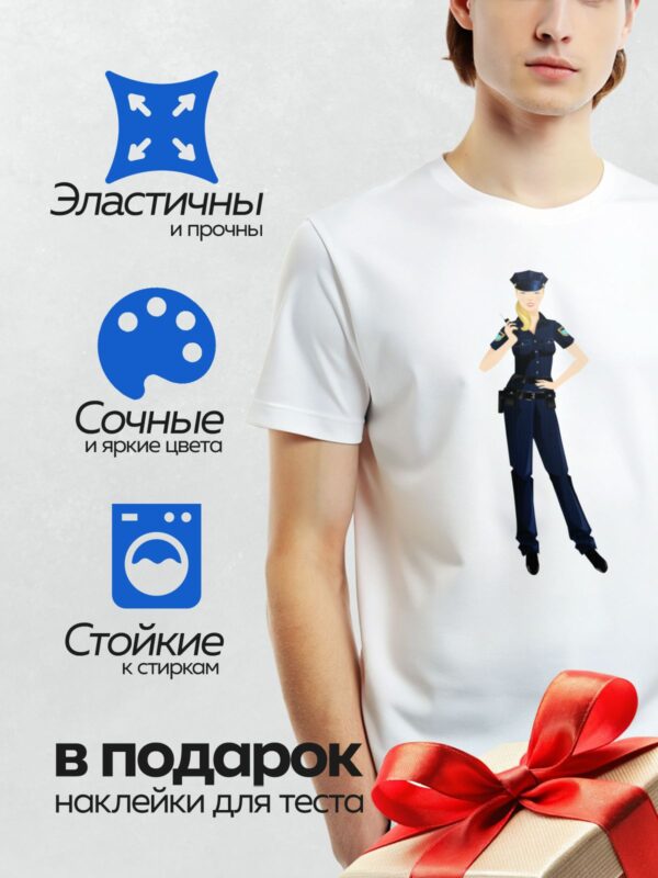 Термонаклейка на одежду DTF / Мультяшная женщина-полицейский в форме с рацией.