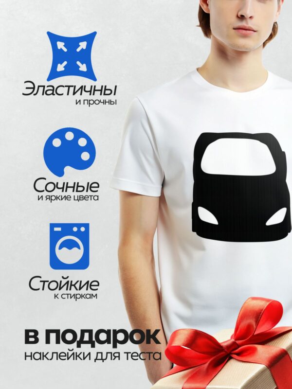 Термонаклейка на одежду DTF / Черный силуэт автомобиля, вид спереди, минималистичный стиль.