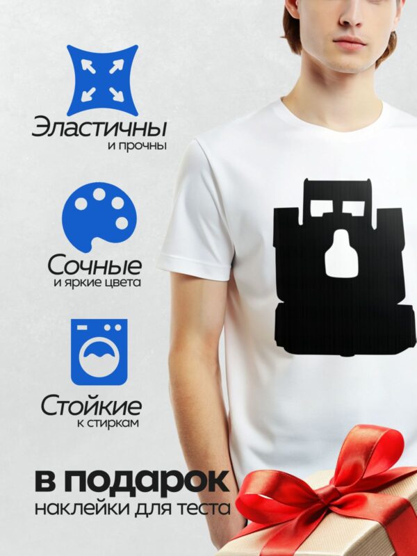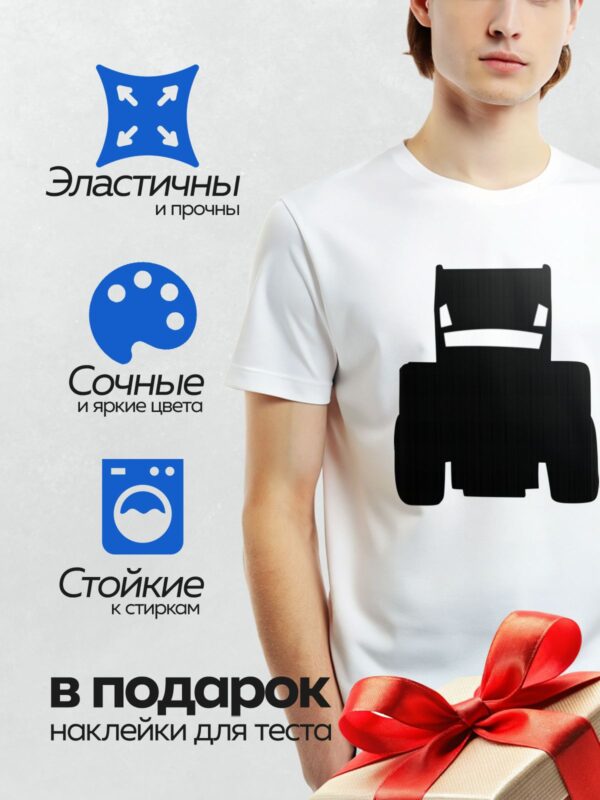 Термонаклейка на одежду DTF / Черный силуэт трактора, вид спереди, минималистичный стиль.