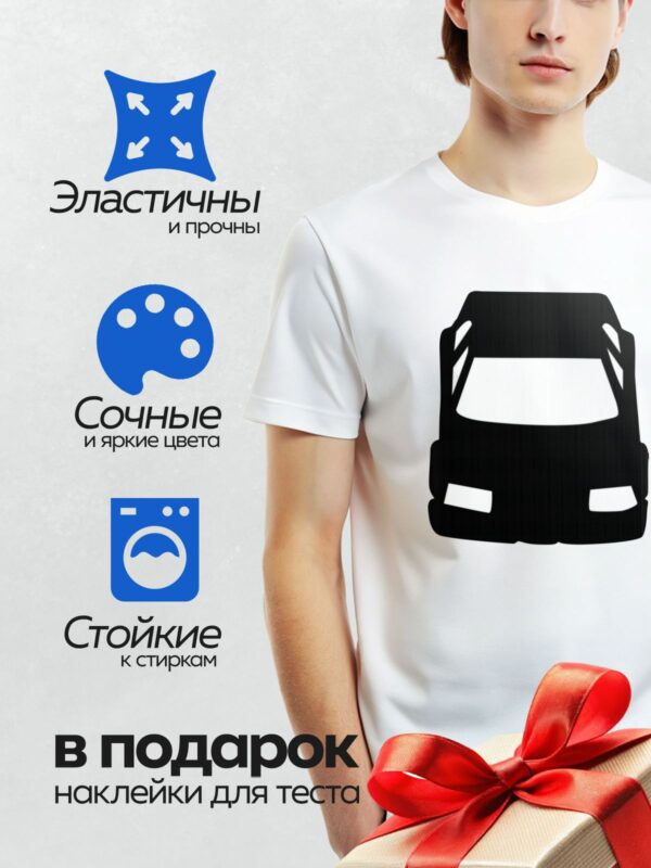 Термонаклейка на одежду DTF / Черный силуэт автомобиля, минималистичный стиль, вид спереди.