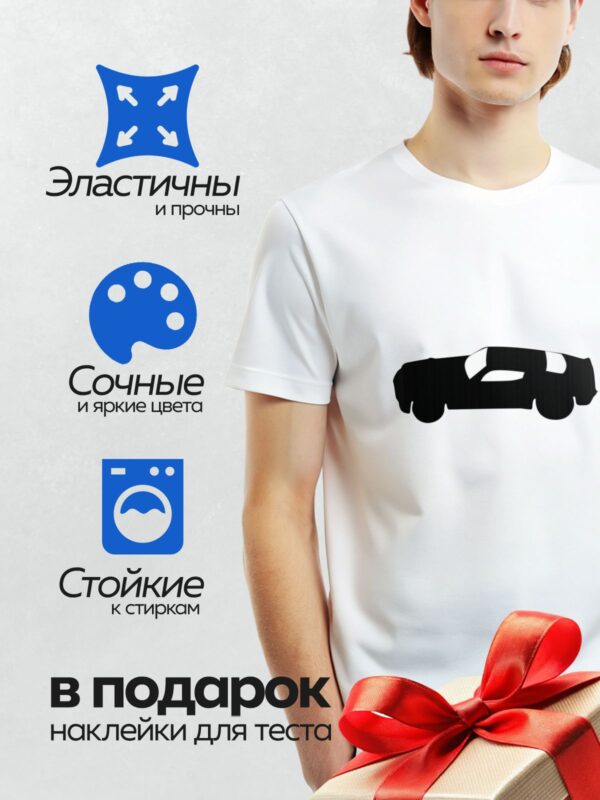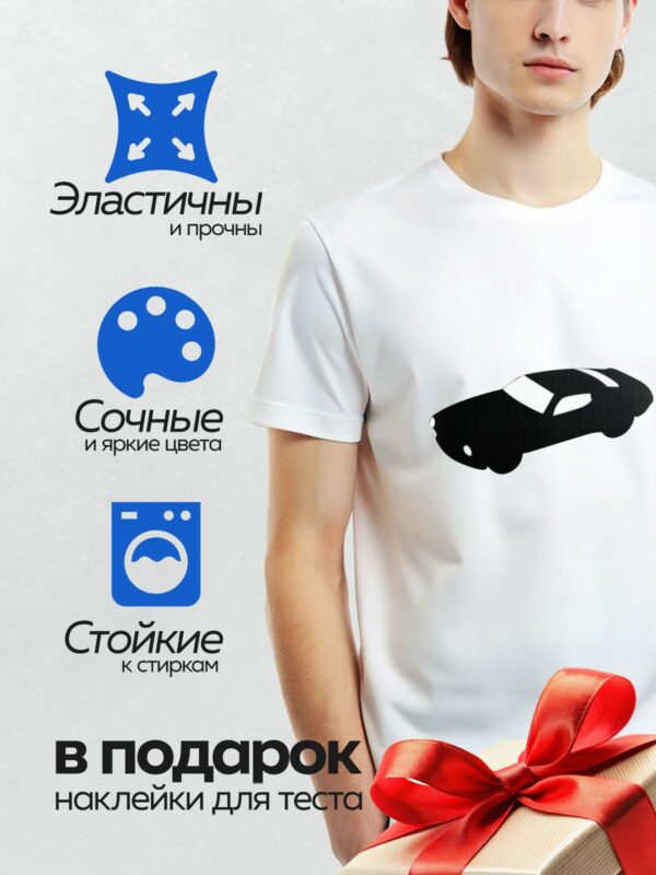 Термонаклейка на одежду DTF / Черный силуэт автомобиля на белом фоне.