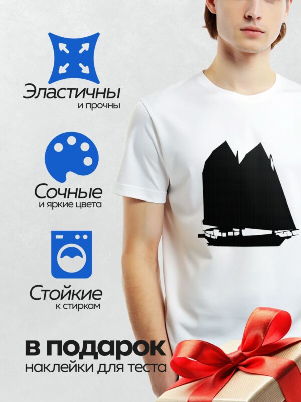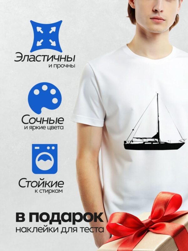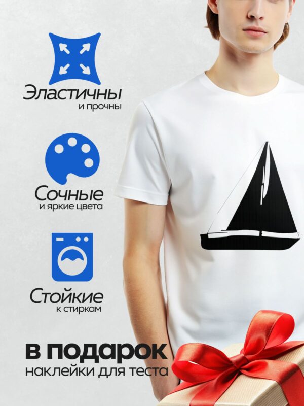 Термонаклейка на одежду DTF / Силуэт парусной лодки на белом фоне.