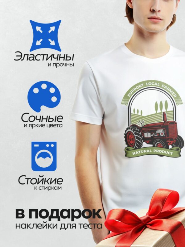 Термонаклейка на одежду DTF / Красный трактор на фоне поля, поддержка местных фермеров.