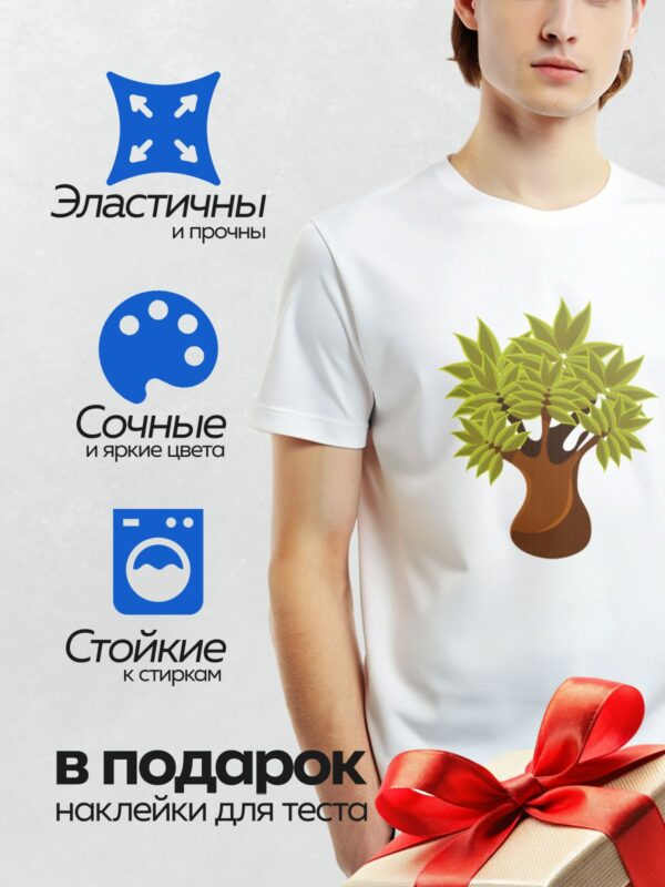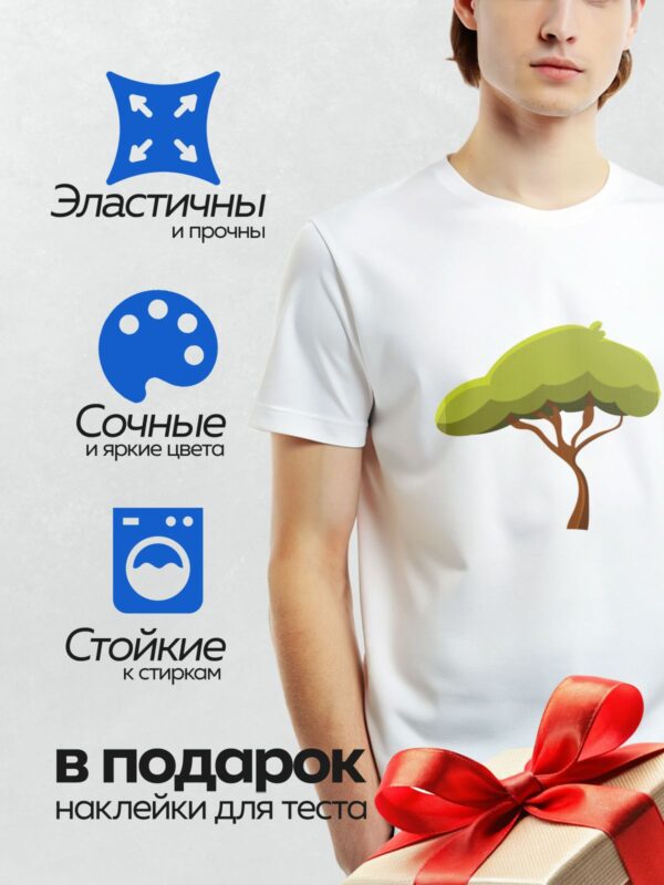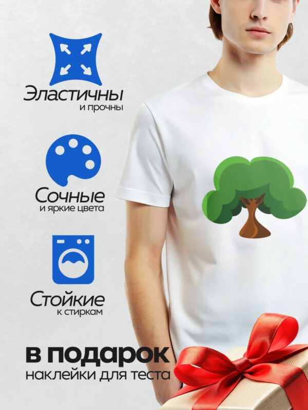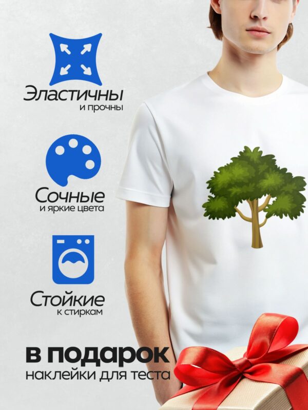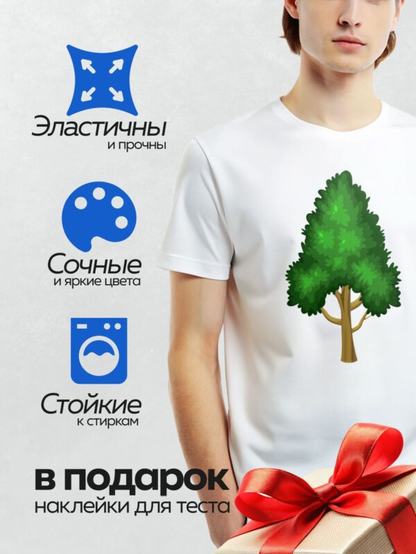 Термонаклейка на одежду DTF / Стилизованное дерево с широкой зелёной кроной.