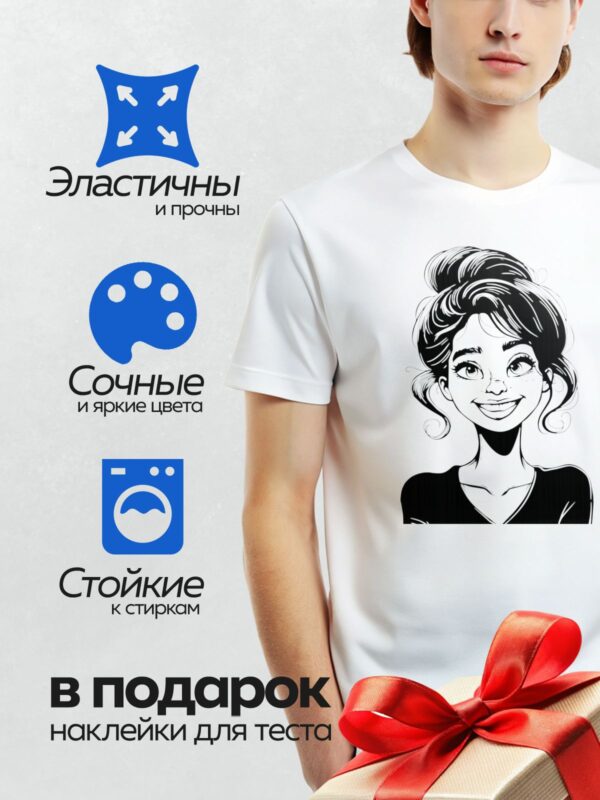 Термонаклейка на одежду DTF / Девушка с короткими волосами и удивлённым выражением лица.