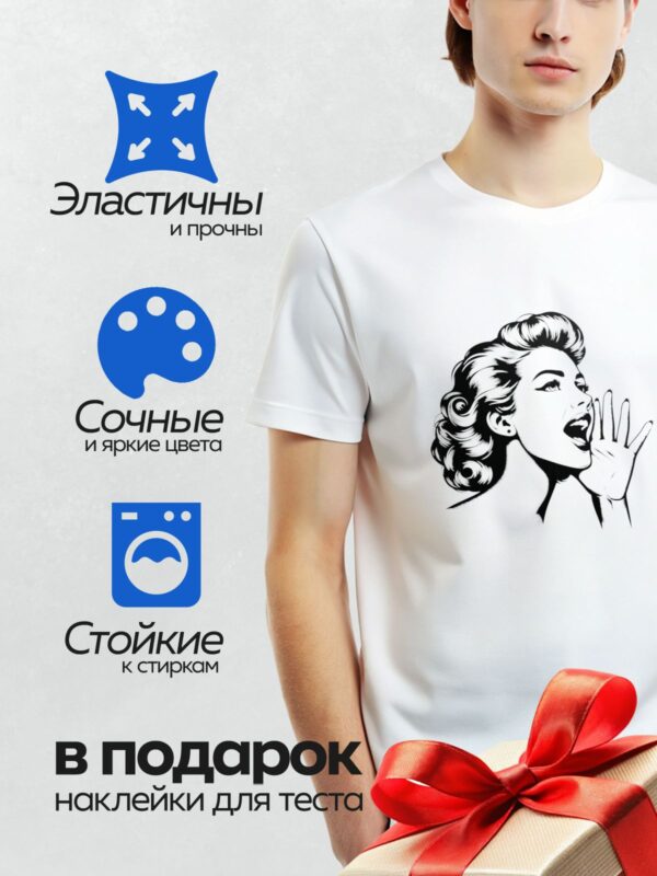 Термонаклейка на одежду DTF / Девушка в стиле пин-ап с волнистыми волосами.