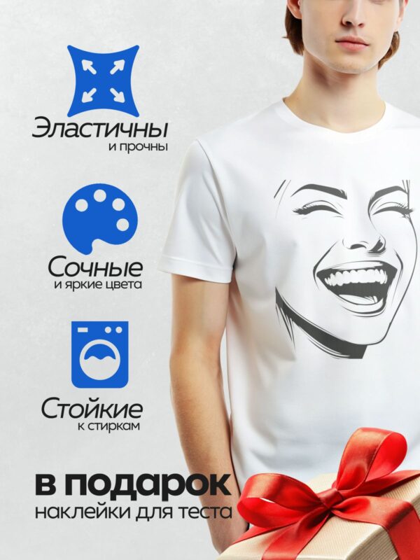 Термонаклейка на одежду DTF / Улыбающееся лицо в стиле ретро-графика.