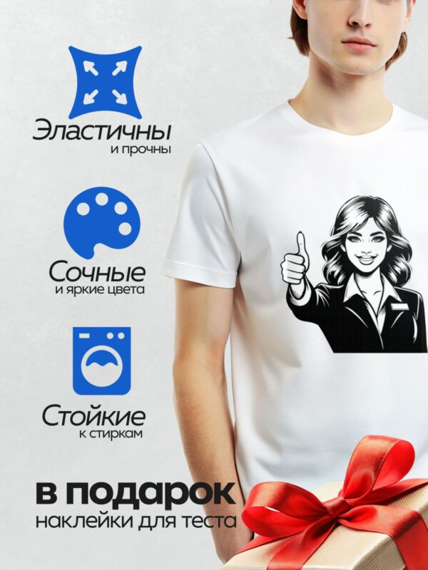 Термонаклейка на одежду DTF / Женщина в деловом костюме улыбается и показывает “палец вверх”.