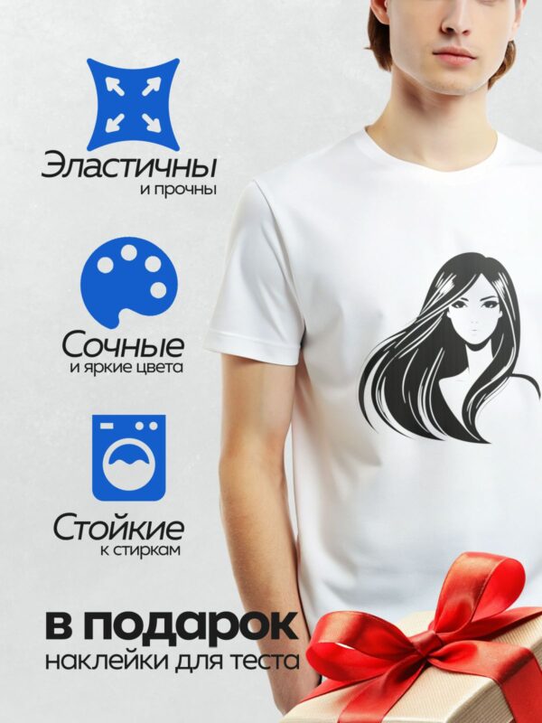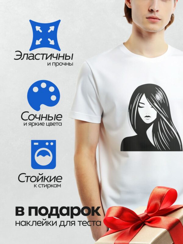 Термонаклейка на одежду DTF / Силуэт девушки с длинными волосами, минималистичный стиль.