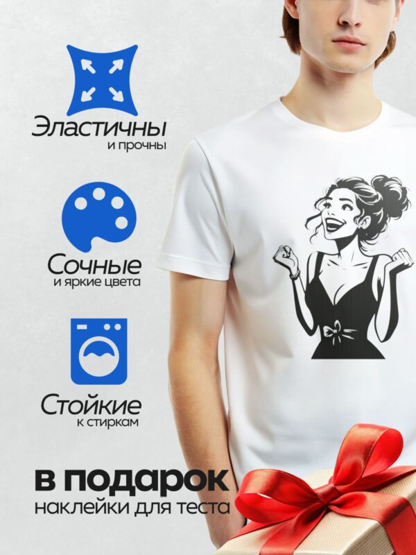 Термонаклейка на одежду DTF / Девушка в стиле поп-арт с удивлённым выражением лица.