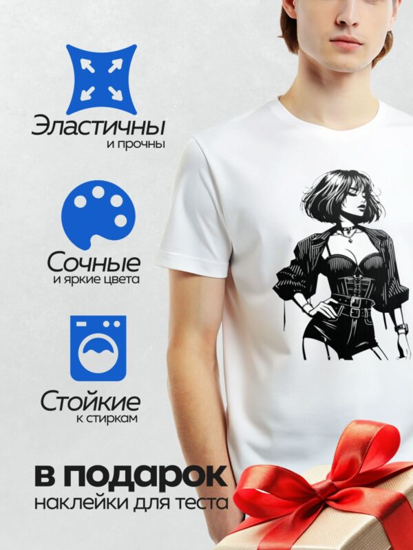 Термонаклейка на одежду DTF / Девушка в корсете, с короткой стрижкой, в стиле линейного рисунка.