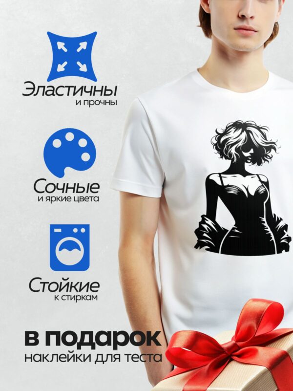 Термонаклейка на одежду DTF / Женский силуэт в монохромном стиле с украшениями.