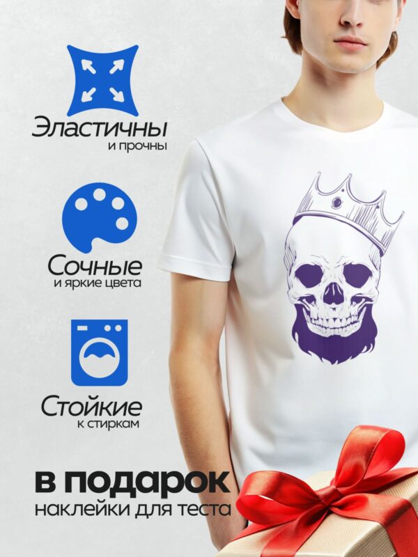 Термонаклейка на одежду DTF / Стилизованный череп с короной и бородой.