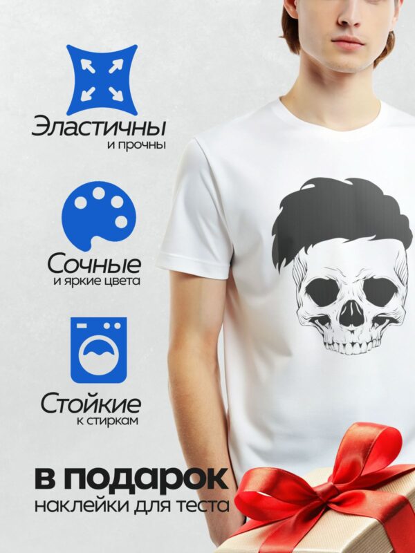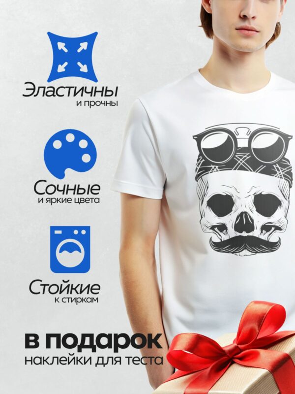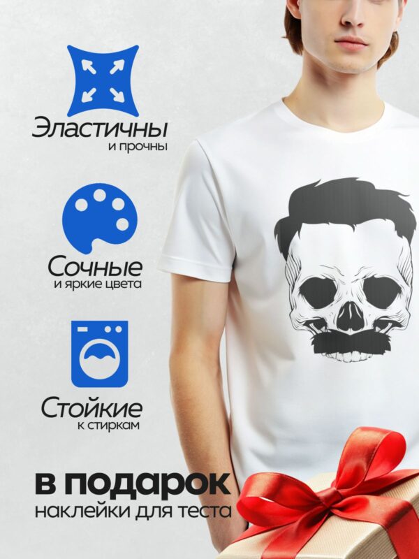 Термонаклейка на одежду DTF / Череп с усами, бородой и модной прической.