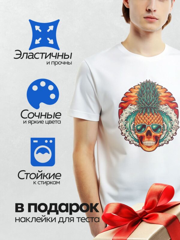 Термонаклейка на одежду DTF / Череп в форме ананаса в солнцезащитных очках.