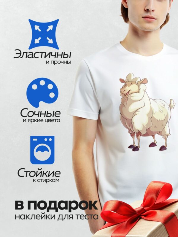 Термонаклейка на одежду DTF / Мультяшная овца с пушистой шерстью и розовыми ножками.