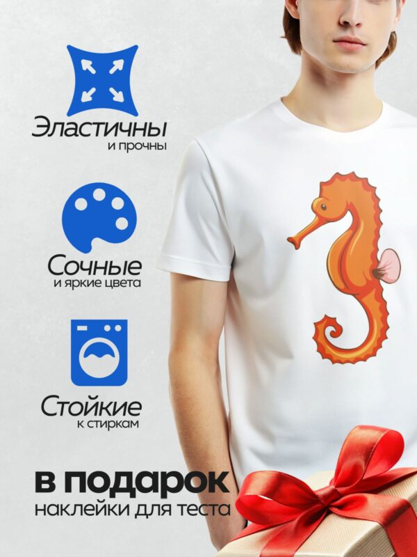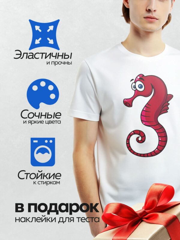 Термонаклейка на одежду DTF / Мультяшный морской конёк с яркими красными плавниками.