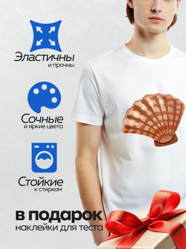 Термонаклейка на одежду DTF / Яркая раковина морского гребешка с веерообразным узором.