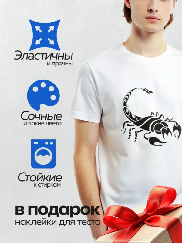 Термонаклейка на одежду DTF / Черно-белый скорпион в трайбл-стиле, абстрактный рисунок.