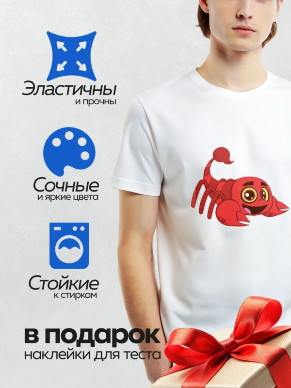 Термонаклейка на одежду DTF / Красный мультяшный скорпион с большими глазами и улыбкой.