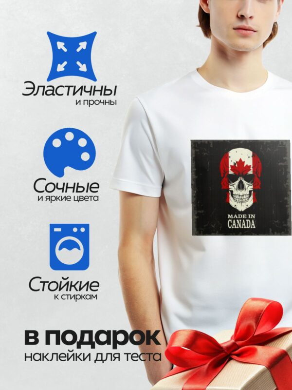 Термонаклейка на одежду DTF / Череп с кленовым листом и надписью “Made in Canada”.