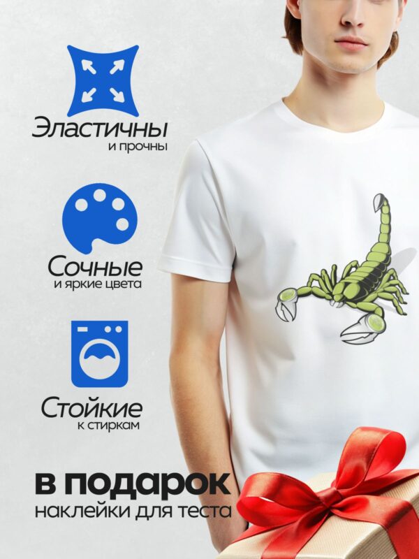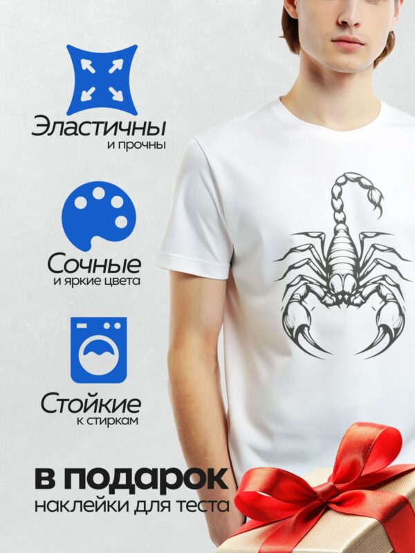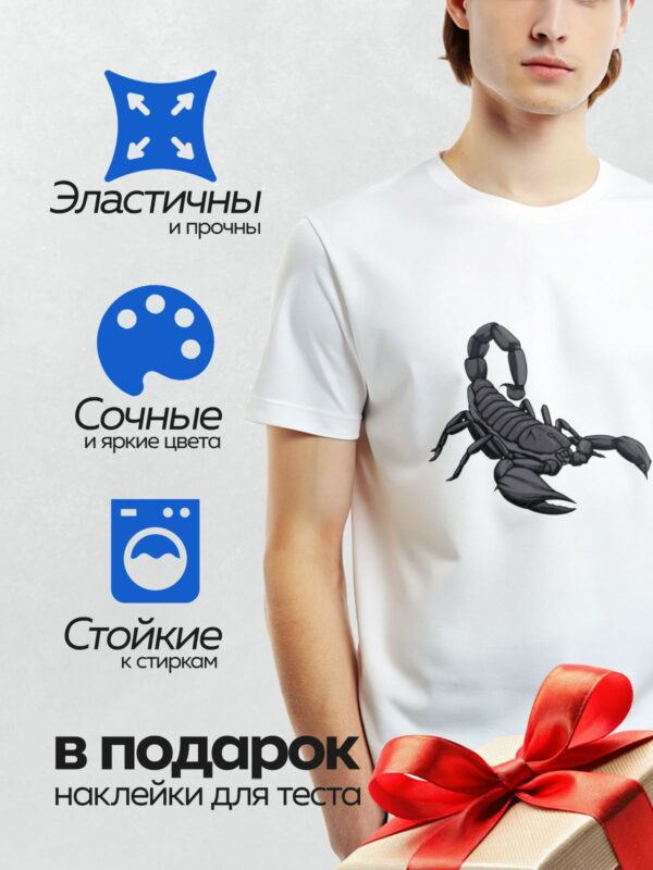 Термонаклейка на одежду DTF / Черно-белый рисунок скорпиона, акцент на деталях.
