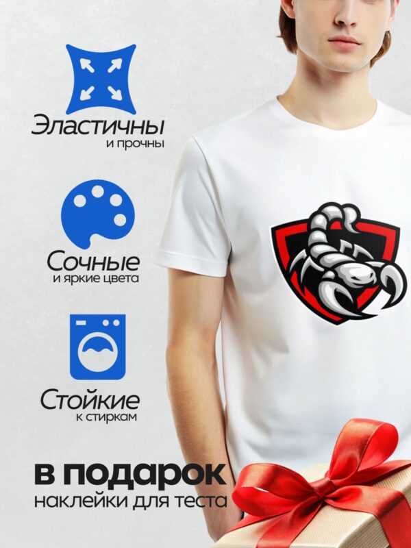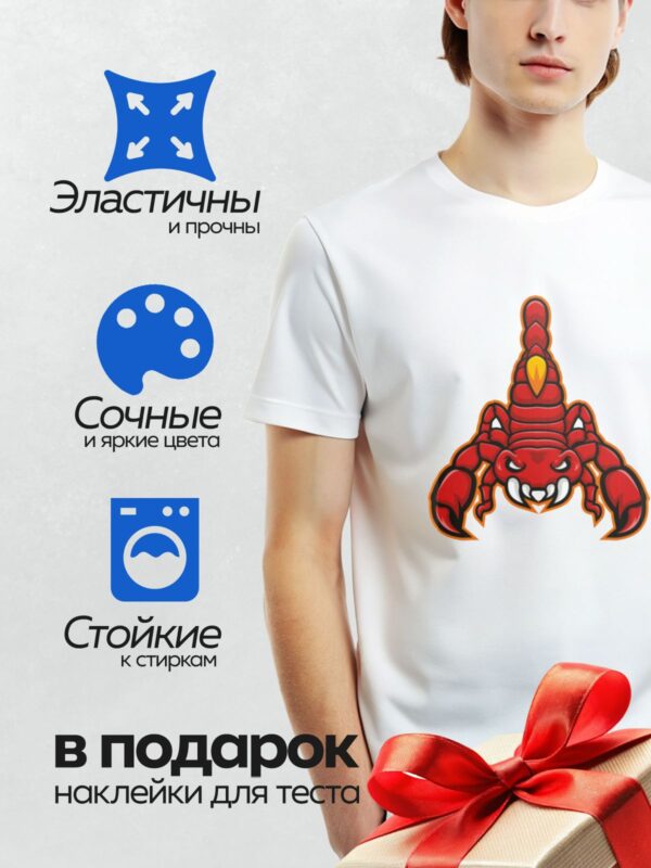 Термонаклейка на одежду DTF / Стилизованный скорпион в черном, белом и красном цветах.