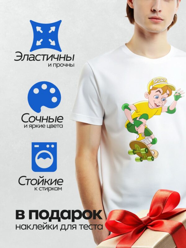 Термонаклейка на одежду DTF / Мультяшный мальчик на скейте в яркой экипировке.