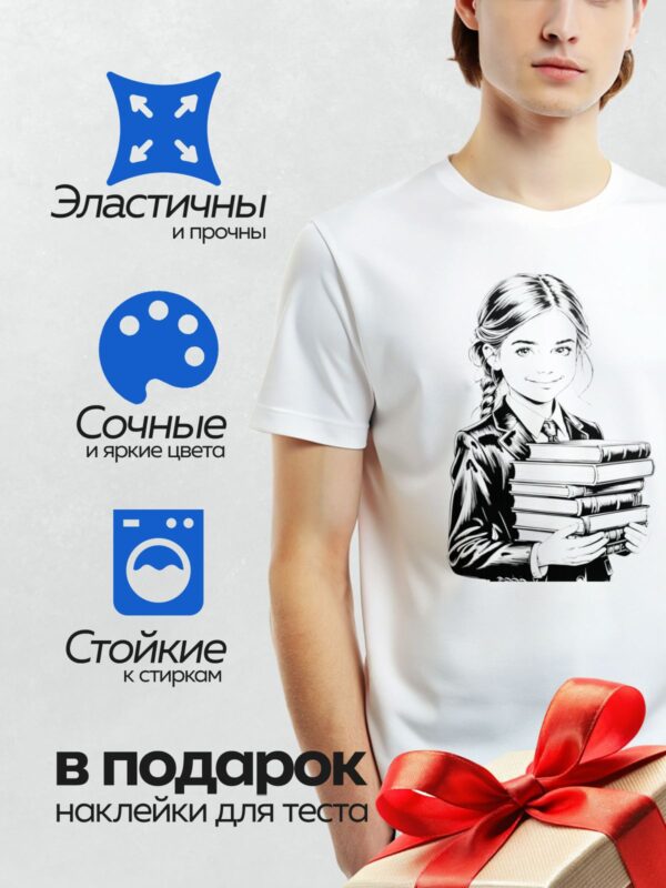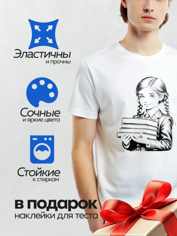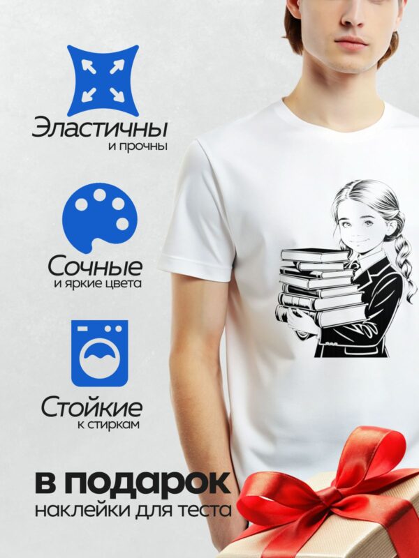 Термонаклейка на одежду DTF / Девушка с двумя косами держит стопку книг.
