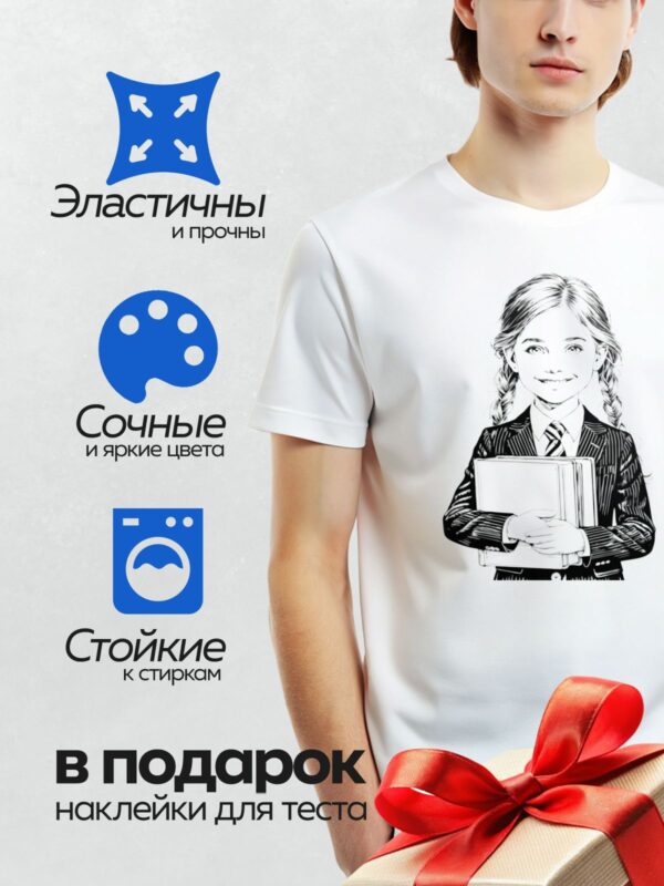 Термонаклейка на одежду DTF / Девочка в школьной форме держит стопку книг.