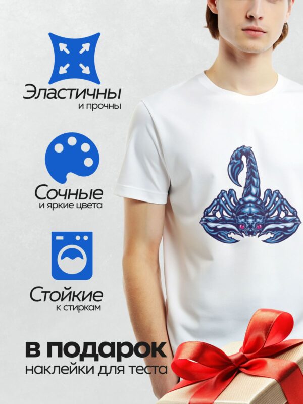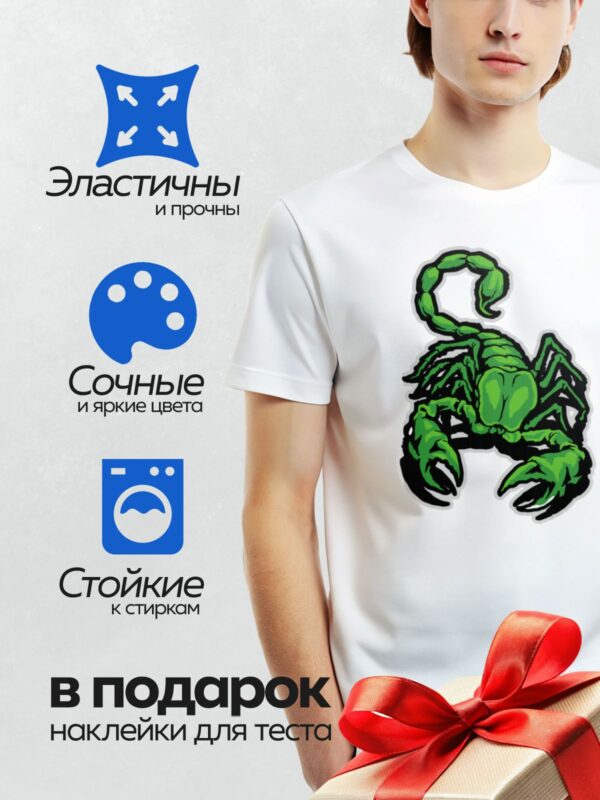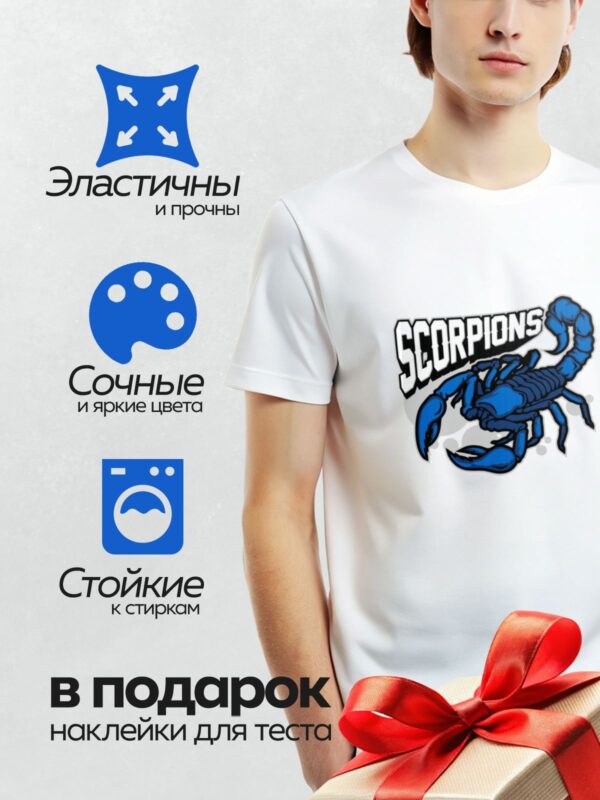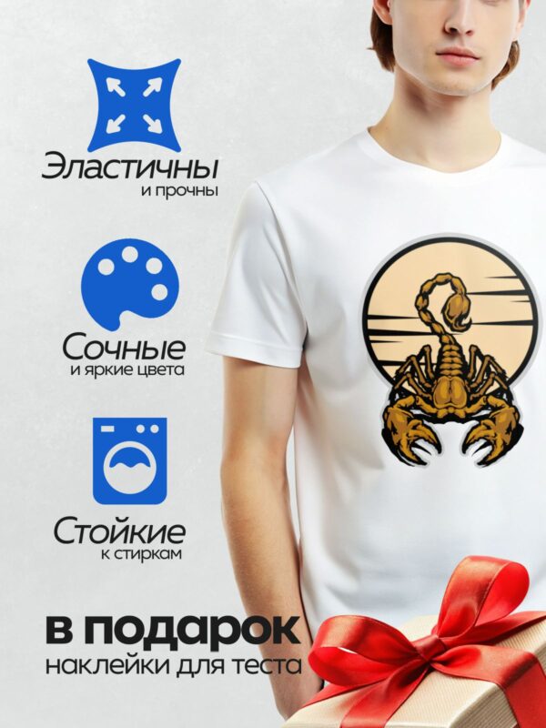 Термонаклейка на одежду DTF / Стилизованный скорпион с надписью “Scorpion”.