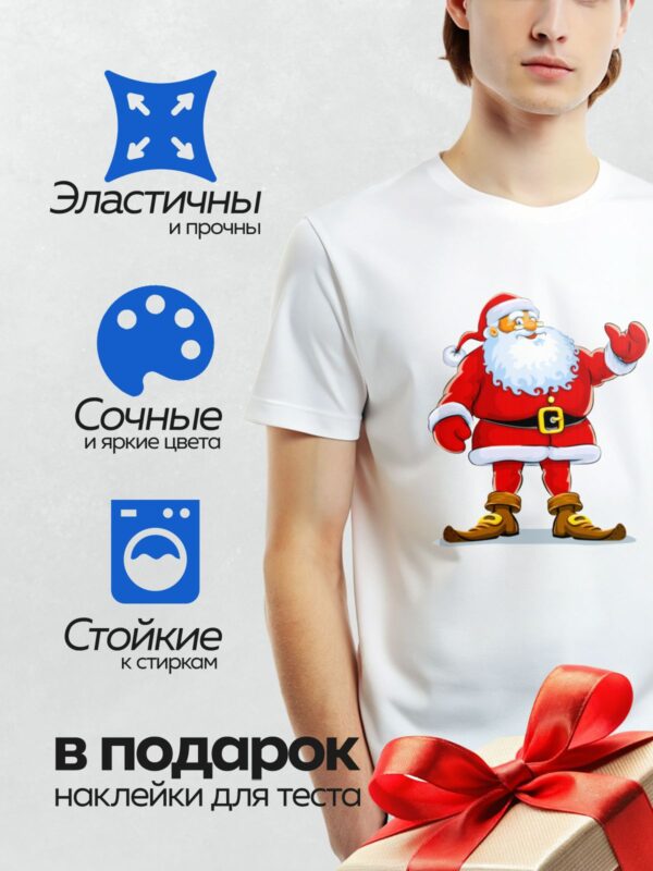 Термонаклейка на одежду DTF / Мультяшный Дед Мороз с белой бородой и красной шапкой.