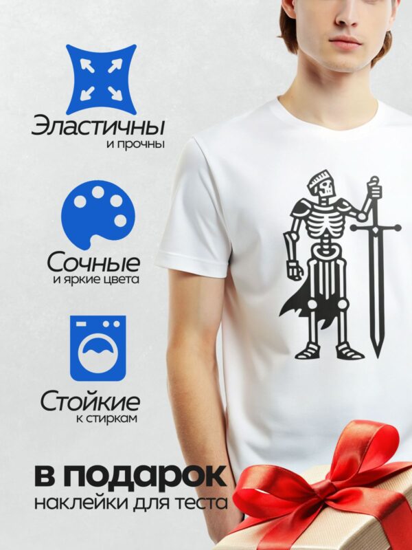 Термонаклейка на одежду DTF / Стилизованный скелет-рыцарь с мечом в минималистичном дизайне.