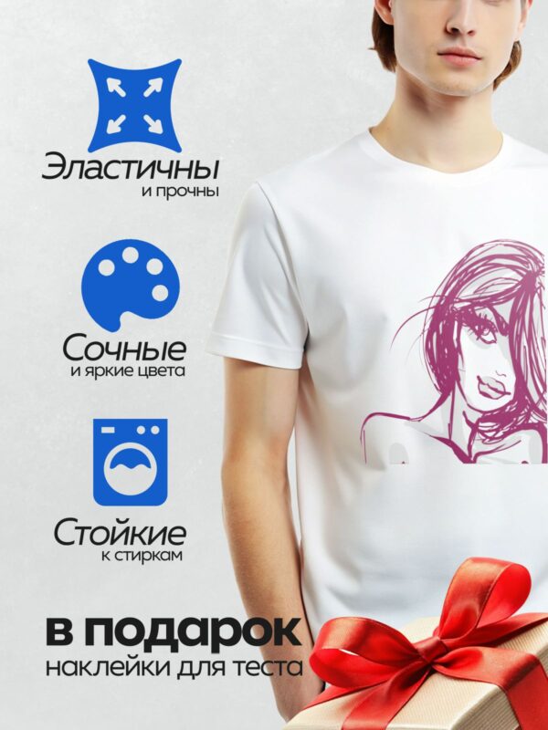 Термонаклейка на одежду DTF / Абстрактный портрет девушки с короткими волосами, выполненный плавными линиями.