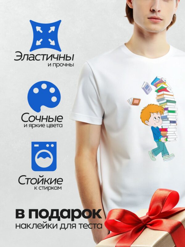 Термонаклейка на одежду DTF / Мальчик с рыжими волосами несёт стопку книг.