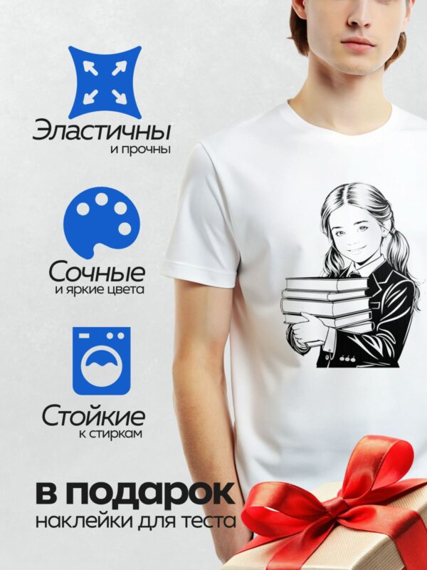 Термонаклейка на одежду DTF / Девушка в школьной форме с книгами в руках.