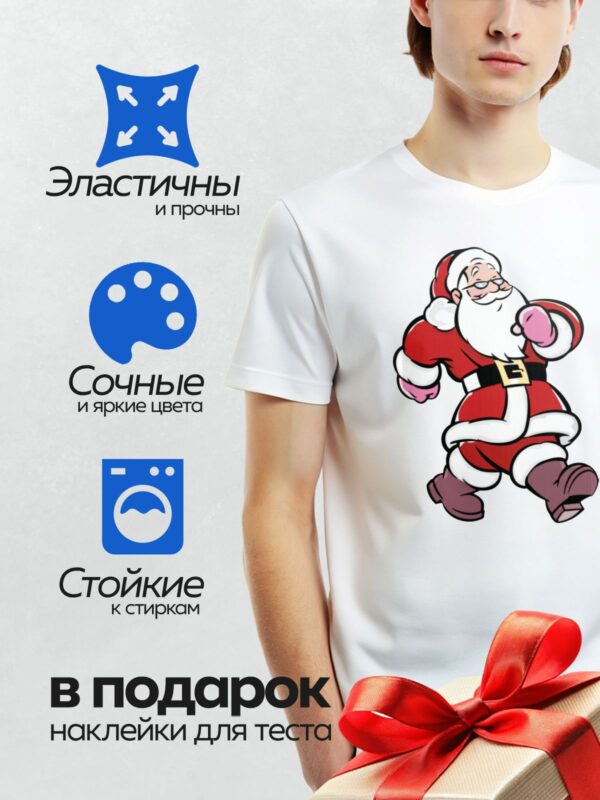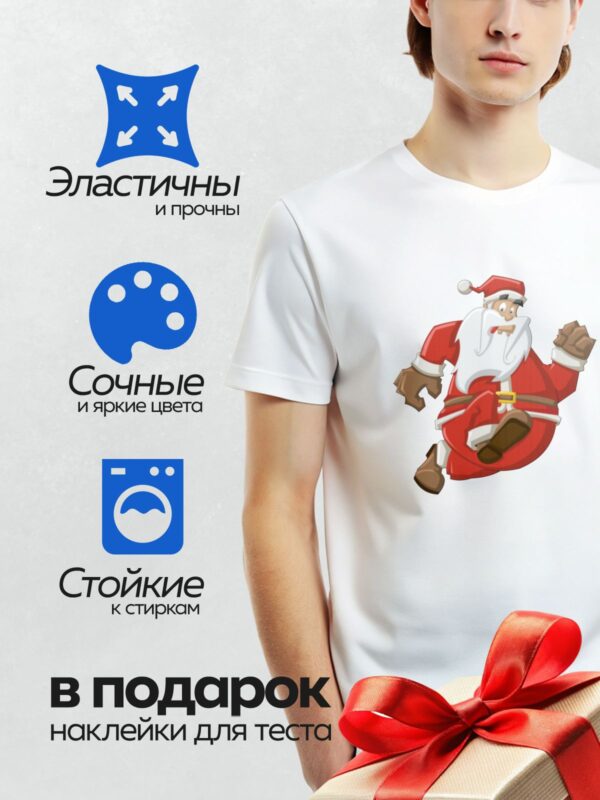 Термонаклейка на одежду DTF / Мультяшный Санта-Клаус в динамичной позе, без мешка и свитка.