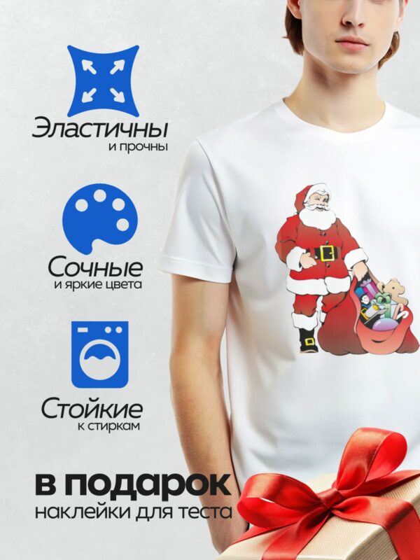 Термонаклейка на одежду DTF / Мультяшный Дед Мороз с мешком подарков.