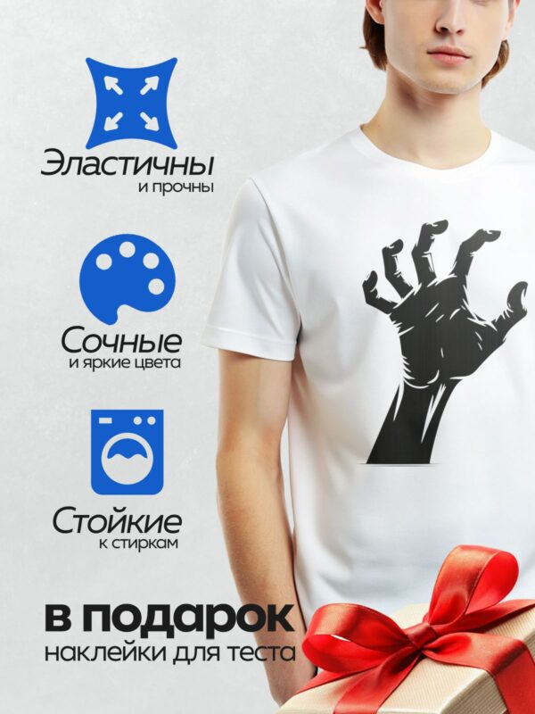 Термонаклейка на одежду DTF / Черная рука зомби с длинными пальцами, выглядит угрожающе.