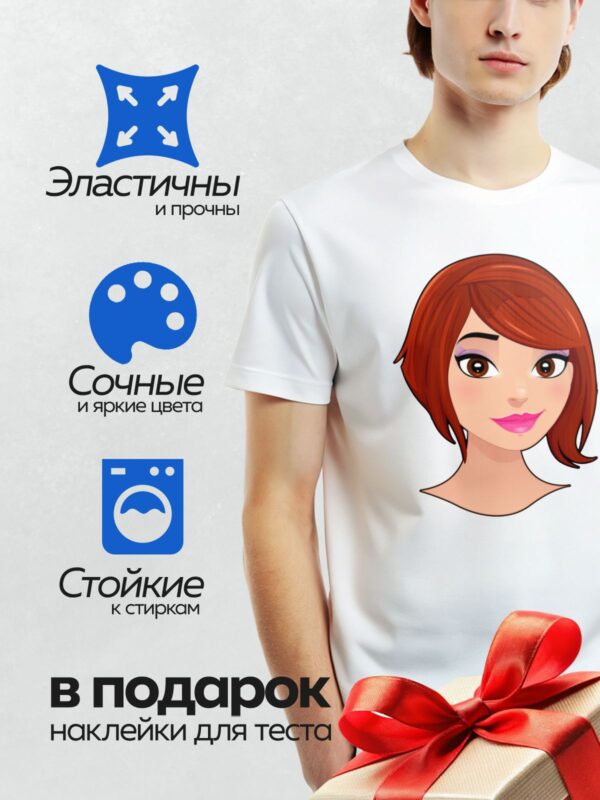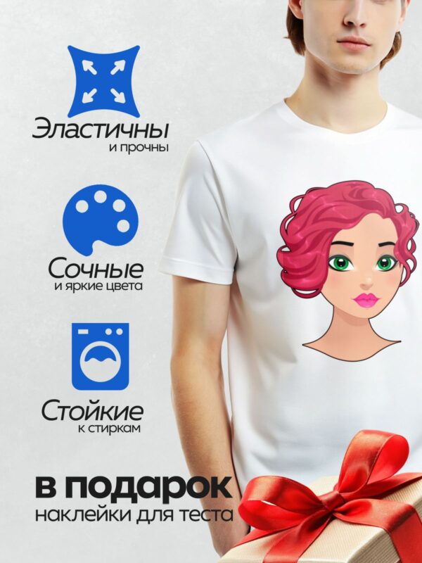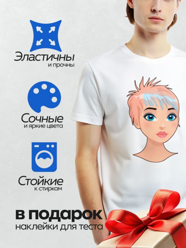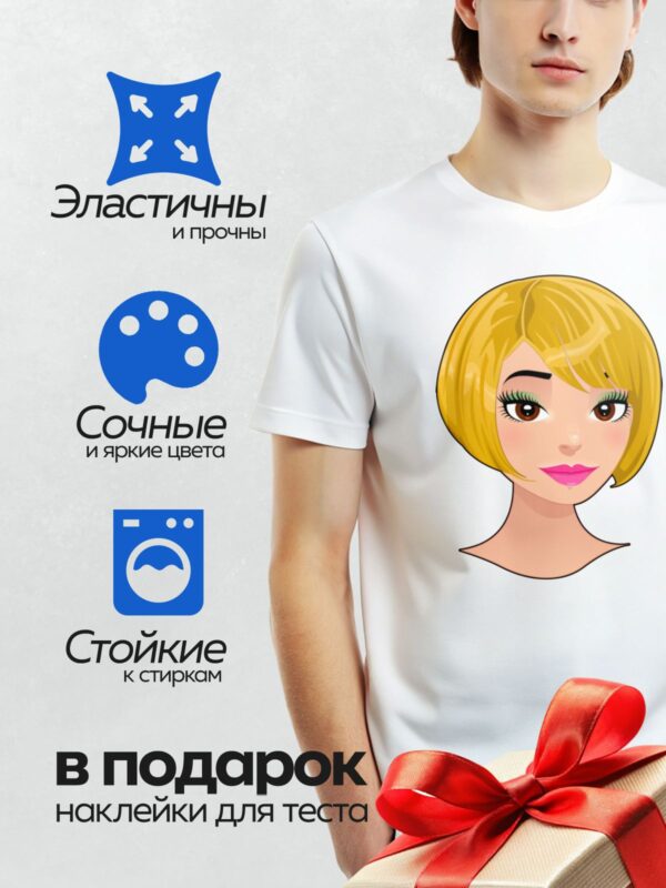 Термонаклейка на одежду DTF / Мультяшное лицо блондинки с короткой стрижкой и голубыми глазами.