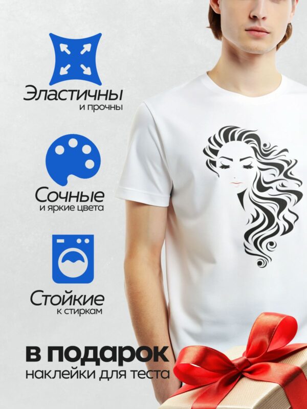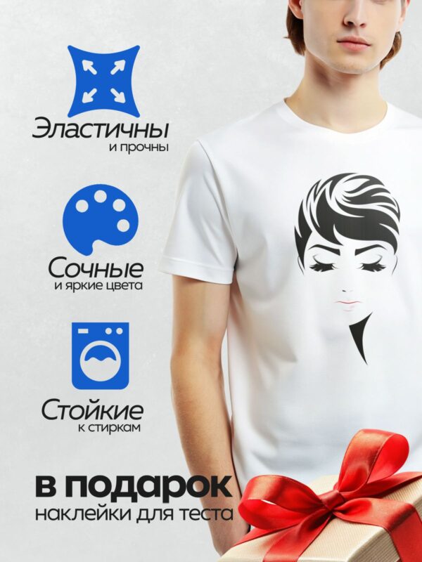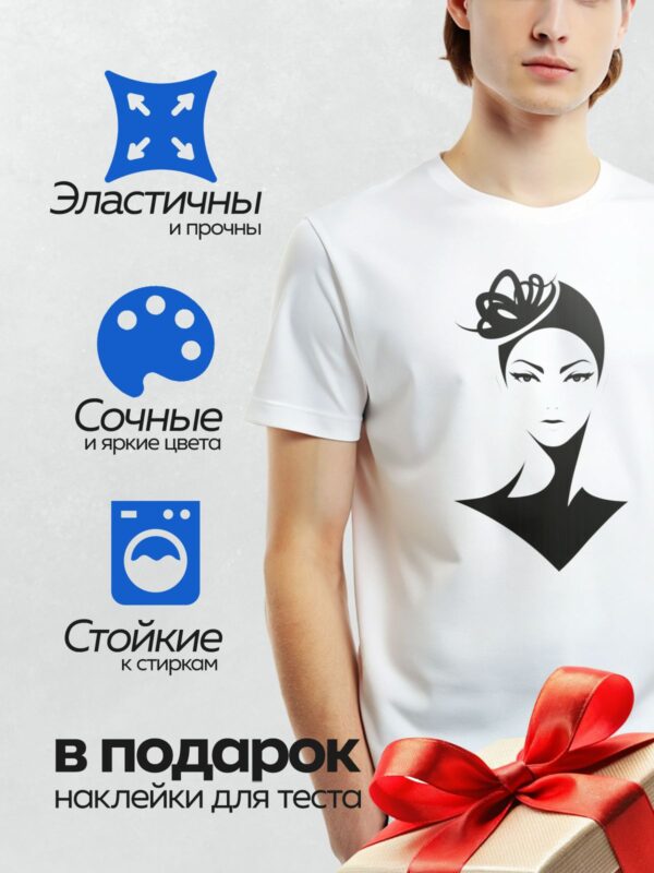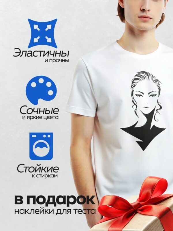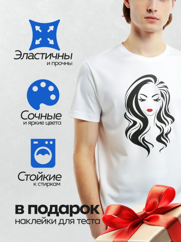 Термонаклейка на одежду DTF / Силуэт женского лица с акцентом на глаза и губы.