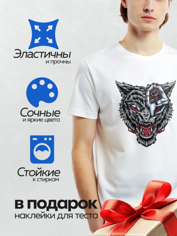 Термонаклейка на одежду DTF / Волк с кибернетической маской и красными глазами.
