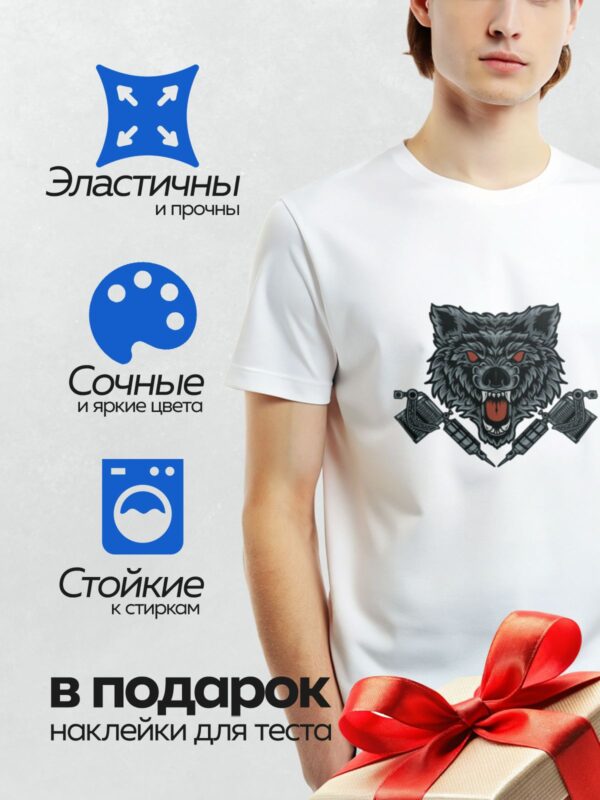Термонаклейка на одежду DTF / Мускулистый волк с ножом и надписью “Killer Wolf”.