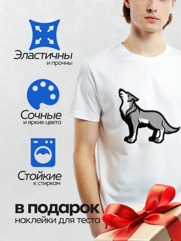Термонаклейка на одежду DTF / Логотип с головой волка и надписью “WOLVES”.